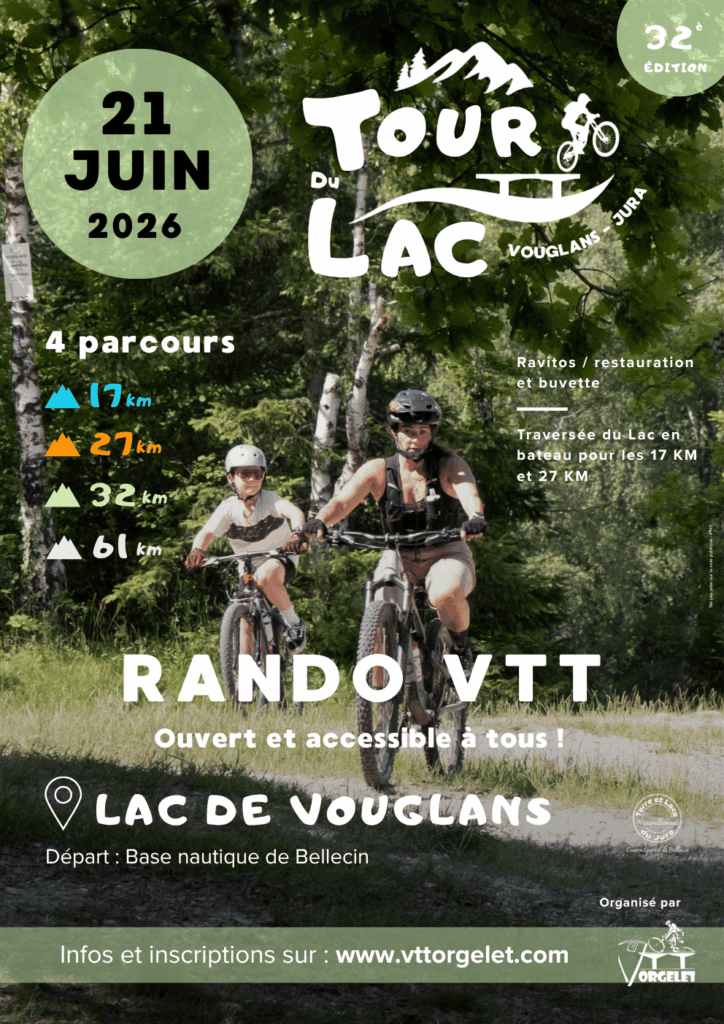 Rendez-vous le 21 juin 2026 sur les rives du lac de Vouglans pour la 32e édition de la rando VTT : le Tour du lac de Vouglans.